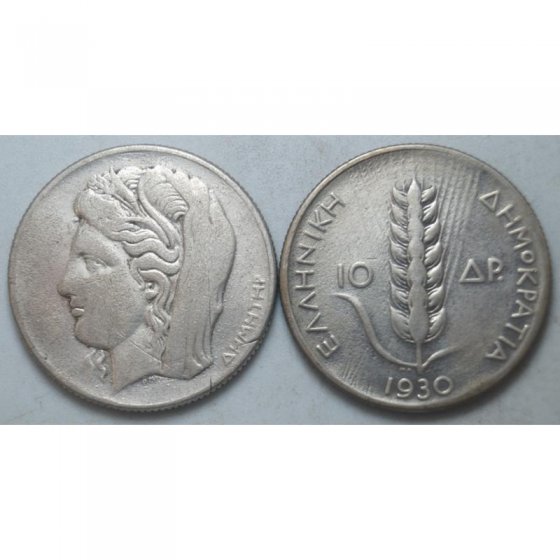 Α' Δημοκρατία - 10 Δραχμές 1930, Ασημένιο