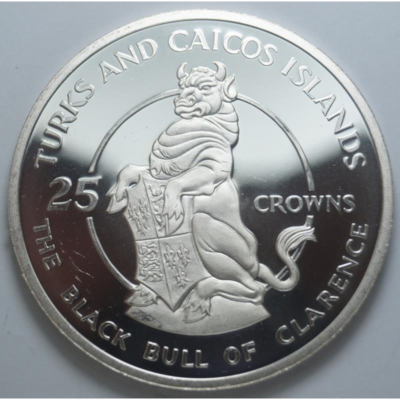 Turks And Caicos Islands - 25 Crowns 1978, Ασημένιο Proof 'THE BLACK BULL OF CRARENCE'