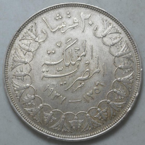 Αίγυπτος - 20 Piastres 1937, Ασημένιο 'Farouk'