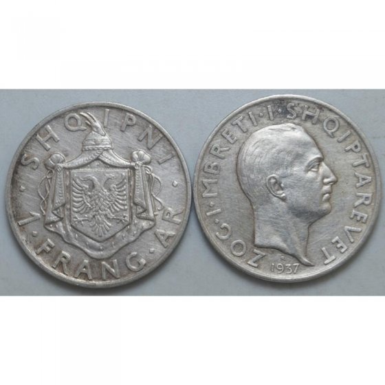 Αλβανία - 1 Frang 1937 R, Ασημένιο