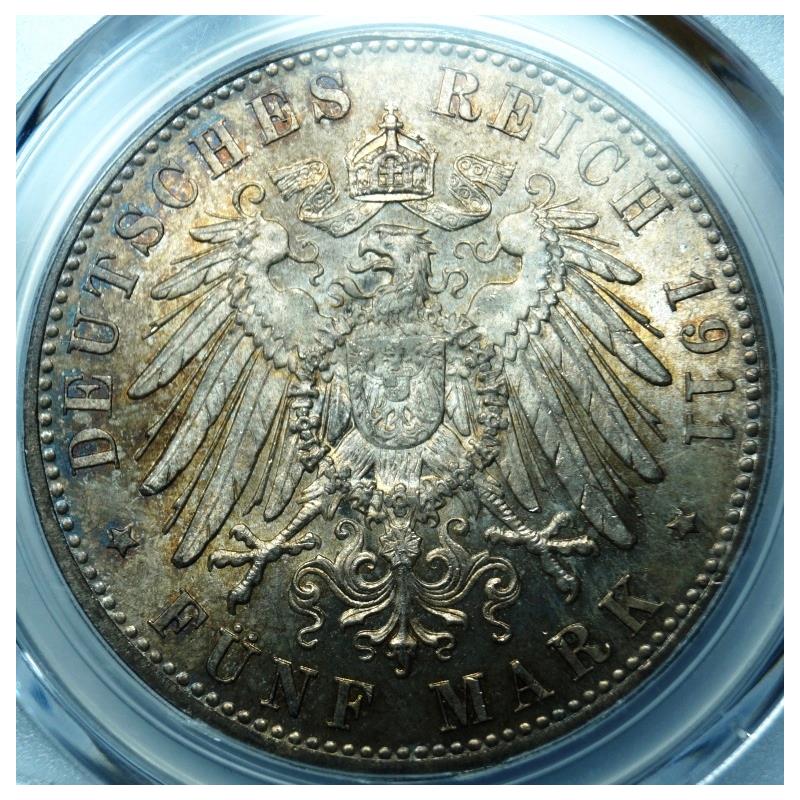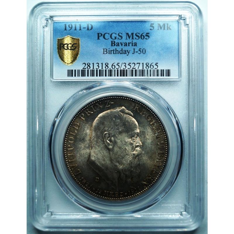 Γερμανία (Bavaria) - 5 Mark 1911-D, PCGS MS_65