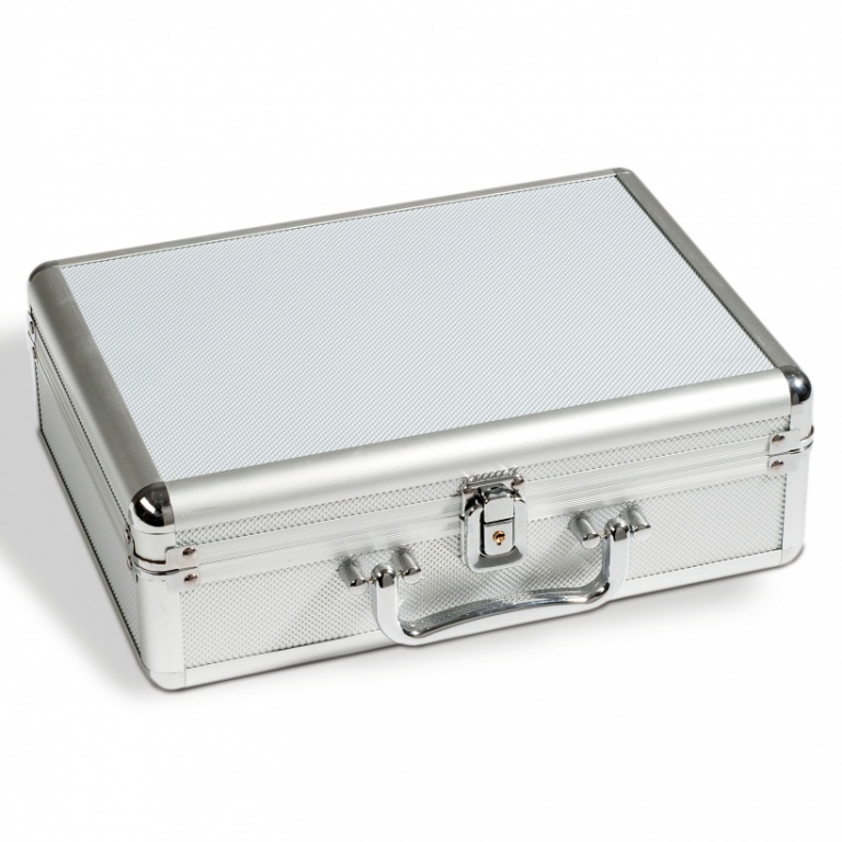 Βαλιτσάκι με 144 θέσεις νομισμάτων για νομίσματα των 2 ευρώ μέσα σε κάψουλες (33mm). Το βαλιτσάκι περιλαμβάνει 6 ταμπλό. Το εσωτερικό του είναι με μαύρο βελούδο ενω τα ταμπλό είναι σε μπλε χρώμα. Περιέχονται 2 κλειδία για ασφλές κλείδωμα.