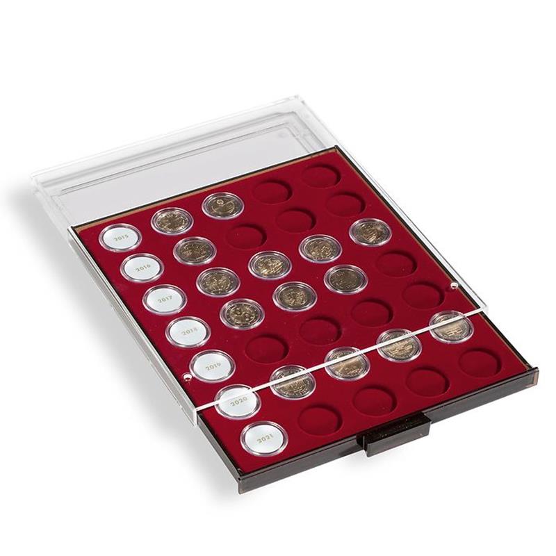 The flag chips have a diameter of 26 mm and thereby fit superbly in all collection systems for 2-euro coins i.e. albums, trays, capsules, coin boxes, etc.