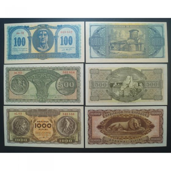 Βασίλειον Της Ελλάδος - 100, 500 και 1.000 Δραχμές 1953