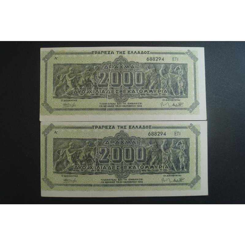 Τράπεζα Ελλάδος - 2.000 Εκατομμύρια 1944 χ 2