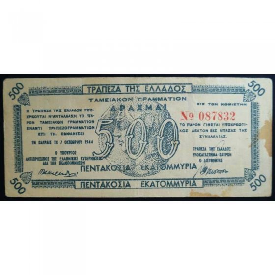 Τράπεζα της Ελλάδος - 500 Εκατομμύρια Δραχμές 1944