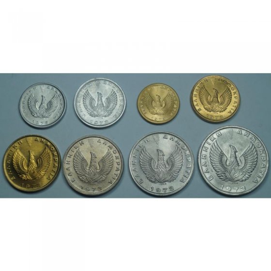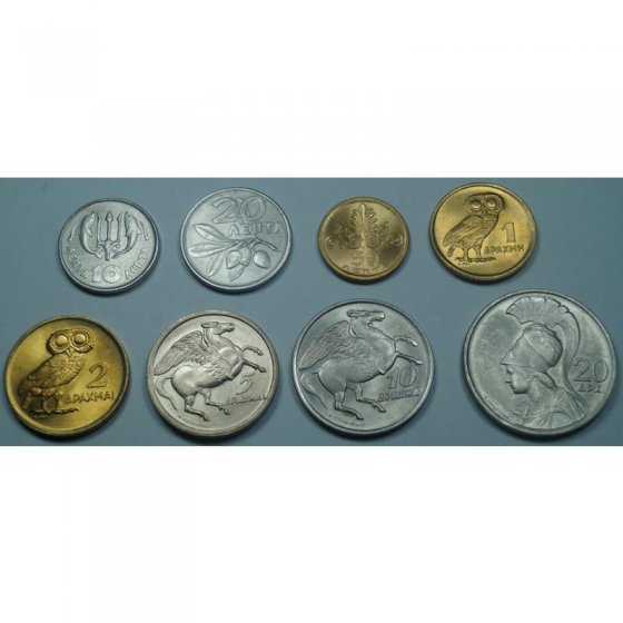 10 Λεπτά - 20 Λεπτά - 50 Λεπτά - 1 Δραχμή - 2 Δραχμές - 5 Δραχμές - 10 Δραχμές - 20 Δραχμές