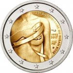 Περιγραφή: Από τη δεκαετία του 1990, η καταπολέμηση του καρκίνου του μαστού συνιστά ζήτημα υψίστης σημασίας σε παγκόσμιο επίπεδο. Με την ευκαιρία της 25ης επετείου από τη δημιουργία της ροζ κορδέλας, σύμβολο του αγώνα αυτού, το Νομισματοκοπείο του Παρισιού (Monnaie de Paris) αποφάσισε να στηρίξει αυτήν την προσπάθεια. Εδώ και 15 χρόνια περίπου, κάθε χρόνο απονέμεται ένα βραβείο ροζ κορδέλας για τη στήριξη των προσπαθειών έρευνας και καινοτομίας. Στο κέρμα απεικονίζεται το γυναικείο στήθος που προστατεύεται συμβολικά από ένα χέρι και την κορδέλα. Περιβάλλεται, στο δεξιό μέρος, από την επιγραφή «25e ANNIVERSAIRE DU RUBAN ROSE» (25η επέτειος της ροζ κορδέλας). Στο δεξιό μέρος του κέρματος αναγράφονται επίσης τα έτη «1992 – 2017», η ένδειξη της χώρας έκδοσης «RF» και το σήμα του νομισματοκοπείου. Στην περίμετρο του κέρματος απεικονίζονται τα 12 αστέρια της Ευρωπαϊκής Ένωσης. Ποσότητα: 10.000.000 κέρματα Ημερομηνία έκδοσης: Σεπτέμβριος 2017Κατάσταση: UNC