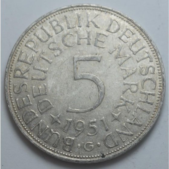 Γερμανία - 5 Mark 1951 G, Ασημένιο