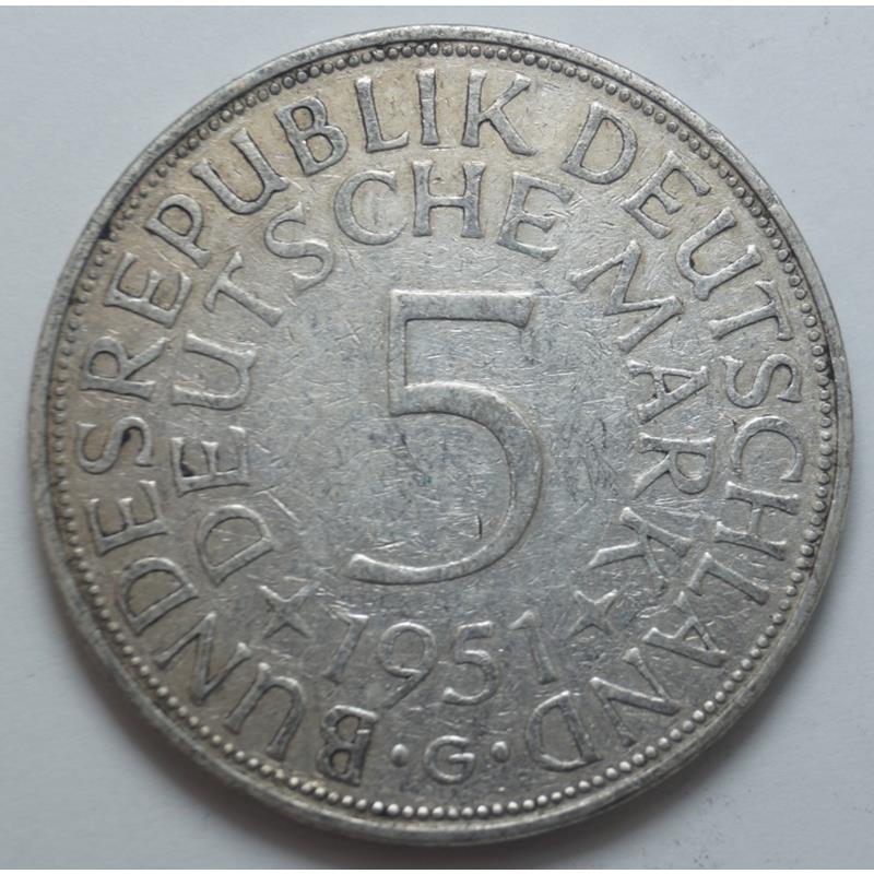 Γερμανία - 5 Mark 1951 G, Ασημένιο