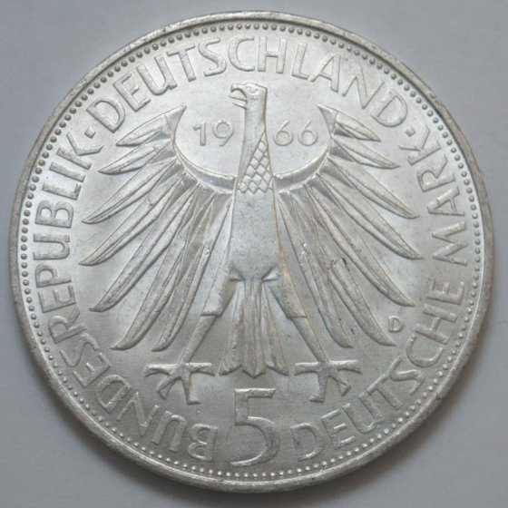 Γερμανία - 5 Mark 1966 D, Ασημένιο
