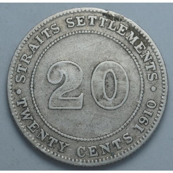 Straits Settlements - 20 Cents 1910, Ασημένιο