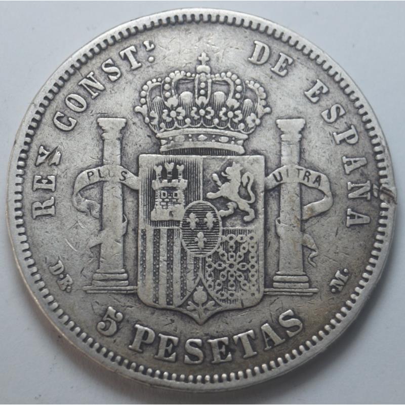Ισπανία - 5 Pesetas 1877, Ασημένιο
