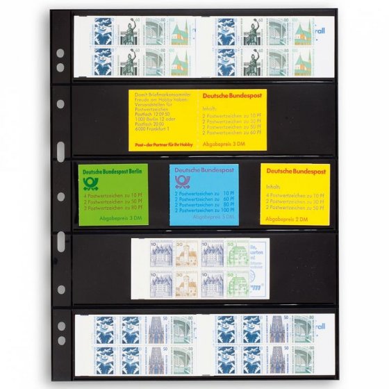 Clear welded strips completely cover the inserted collection items, thereby offering optimum protection. Document quality: 100% free from chemical softeners and acids. 8-cm perforation. The clear C sheets allow one-sided storage, the double-sided black S sheets provide double capacity.