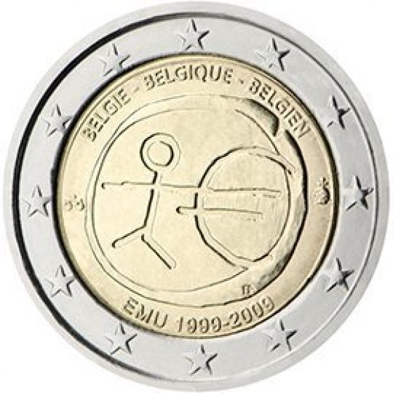 Θέμα: 10η επέτειος της Οικονομικής και Νομισματικής Ένωσης Περιγραφή: Στο κέρμα απεικονίζεται ένα ανθρωπάκι που συνενώνεται με το σύμβολο €. Η παράσταση αυτή εκφράζει την ιδέα του ενιαίου νομίσματος και, κατ' επέκταση, της Οικονομικής και Νομισματικής Ένωσης (ΟΝΕ) ως το τελευταίο βήμα της μακραίωνης ιστορίας εμπορικών συναλλαγών και οικονομικής ενοποίησης της Ευρώπης. Το κέρμα εκδίδεται από όλες τις χώρες της ζώνης του ευρώ και φέρει το όνομα της χώρας έκδοσης καθώς και την επιγραφή «ΟΝΕ 1999-2009» στην αντίστοιχη γλώσσα. Το σχέδιο επιλέχθηκε μεταξύ πέντε επικρατέστερων σχεδίων μέσω ηλεκτρονικής ψηφοφορίας στην οποία συμμετείχαν πολίτες από όλες τις χώρες της Ευρωπαϊκής Ένωσης. Φιλοτεχνήθηκε από τον Γιώργο Σταματόπουλο, γλύπτη του Τμήματος Τύπωσης Κερμάτων της Τράπεζας της Ελλάδος. Στην περίμετρο του κέρματος απεικονίζονται τα 12 αστέρια της Ευρωπαϊκής Ένωσης. Ημερομηνία έκδοσης: Ιανουάριος 2009