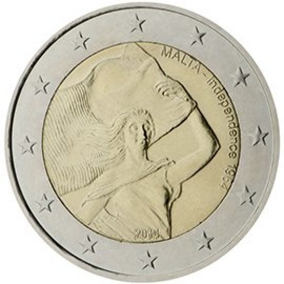 Θέμα: Ανεξαρτησία της Μάλτας - 1964 Ποσότητα: 400.000 κέρματα Περιγραφή: Το αναμνηστικό κέρμα για την επέτειο της ψήφισης του Συντάγματος Ανεξαρτησίας της Μάλτας το 1964 είναι το τέταρτο σε μια σειρά πέντε κερμάτων επ’ ευκαιρία των διαφόρων επετείων που αποτελούν ορόσημα στη συνταγματική ιστορία της Μάλτας. Με το Σύνταγμα του 1964 η Μάλτα έγινε ανεξάρτητο κράτος για πρώτη φορά μετά από εκατοντάδες χρόνια ξένης κυριαρχίας. Στο κέρμα απεικονίζεται λεπτομέρεια του ορειχάλκινου μνημείου εις ανάμνηση της Ανεξαρτησίας, το οποίο φιλοτεχνήθηκε από τον καλλιτέχνη Gianni Bonnici το 1989. Δείχνει μια νεαρή γυναίκα, που αντιπροσωπεύει τη Μάλτα, να κρατά στο χέρι της τη σημαία της Μάλτας. Στα δεξιά, σε ημικυκλική διάταξη, αναγράφεται η επιγραφή «MALTA - Independence 1964» και στο κάτω μέρος το έτος έκδοσης «2014». Στην περίμετρο του κέρματος απεικονίζονται τα δώδεκα αστέρια της Ευρωπαϊκής Ένωσης. Ημερομηνία έκδοσης: Οκτώβριος 2014