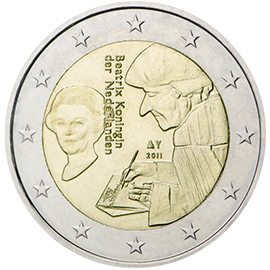 Θέμα: 500 χρόνια από την έκδοση του παγκοσμίου φήμης βιβλίου «Laus Stultitiae» (Μωρίας Εγκώμιον) που συνέγραψε ο Ολλανδός φιλόσοφος, ουμανιστής και θεολόγος Έρασμος Ποσότητα: 4 εκατομμύρια κέρματα Περιγραφή: Στο κέρμα απεικονίζεται ο Έρασμος να συγγράφει το βιβλίο του στα δεξιά και η προτομή της Βασίλισσας Βεατρίκης στα αριστερά. Ανάμεσα στις δύο εικόνες εμφανίζονται οι λέξεις «Beatrix Koningin der Nederlanden» χαραγμένες κατακόρυφα. Το έτος «2011», τα διακριτικά του διευθυντή του νομισματοκοπείου και το σήμα του νομισματοκοπείου αναγράφονται οριζοντίως κοντά στο κέντρο του κέρματος. Στην περίμετρο του κέρματος απεικονίζονται τα δώδεκα αστέρια της Ευρωπαϊκής Ένωσης. Ημερομηνία έκδοσης: Ιανουάριος 2011